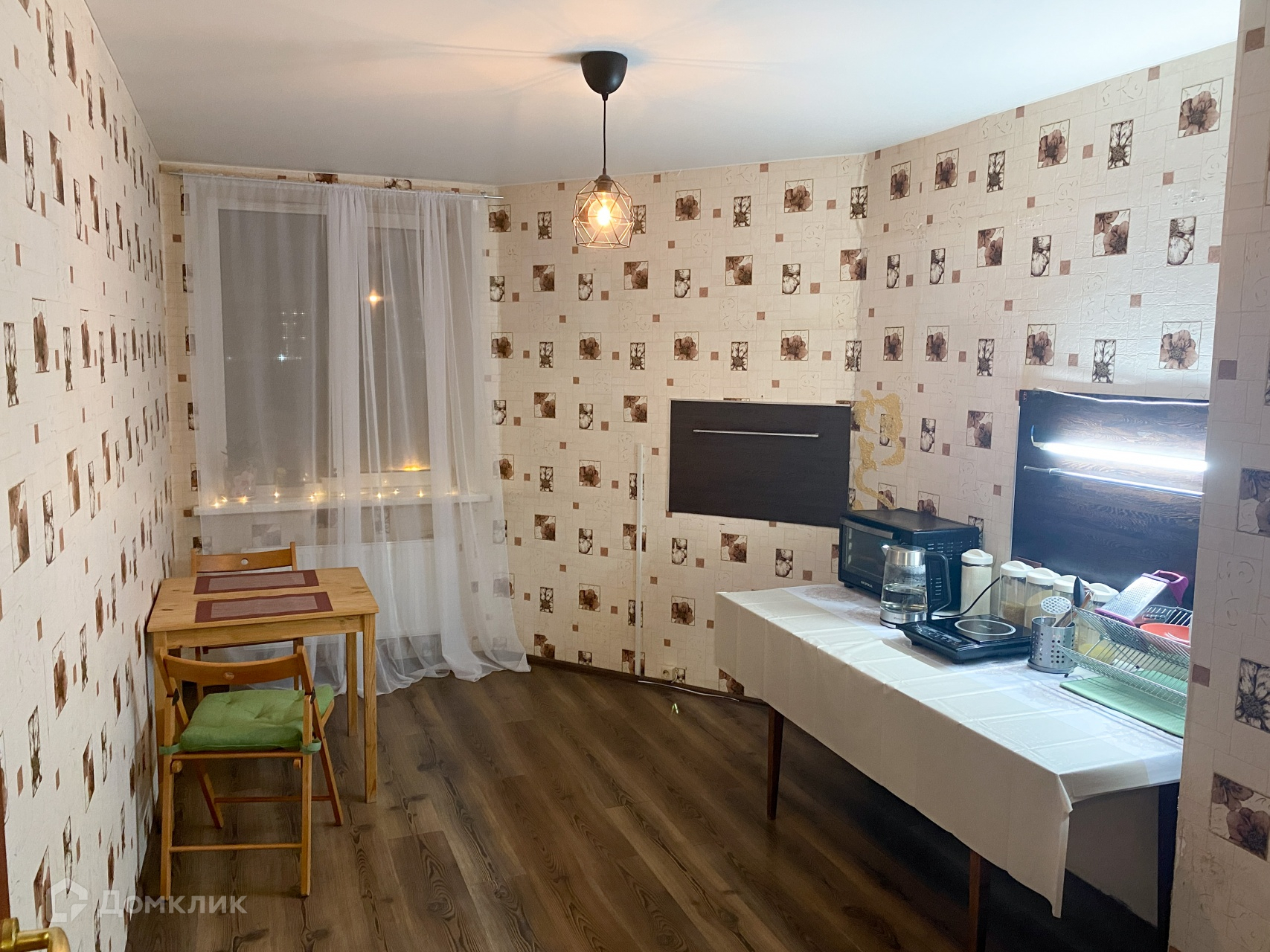 В квартире навесные потолки. Ламинат.