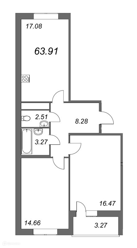 Общая площадь 63.91 м2
