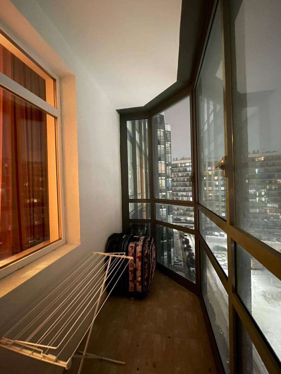 Застеленный большой балкон 5м2 с панорамным остеклением.