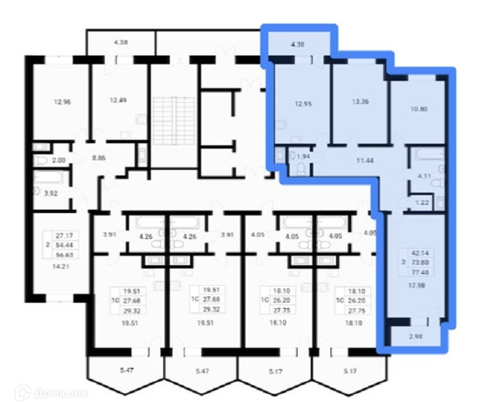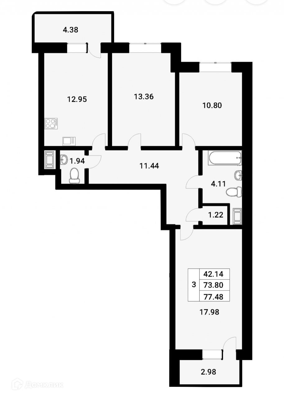 Общая площадь 77.48 м2