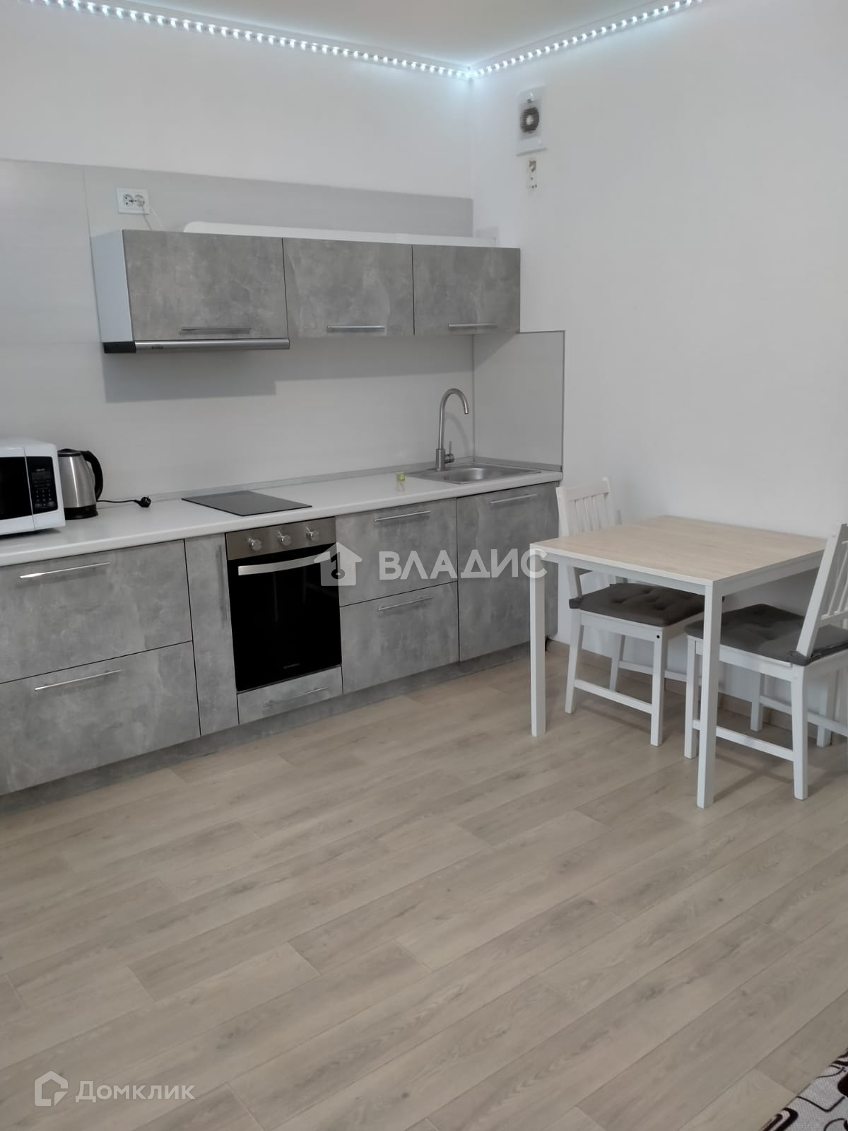 + функциональный кухонный гарнитур идеально вписывается в интерьер, обеденный стол и стулья;