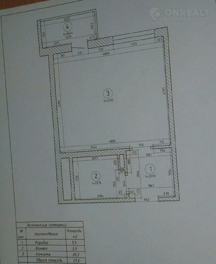Высота потолков 2.6 м
