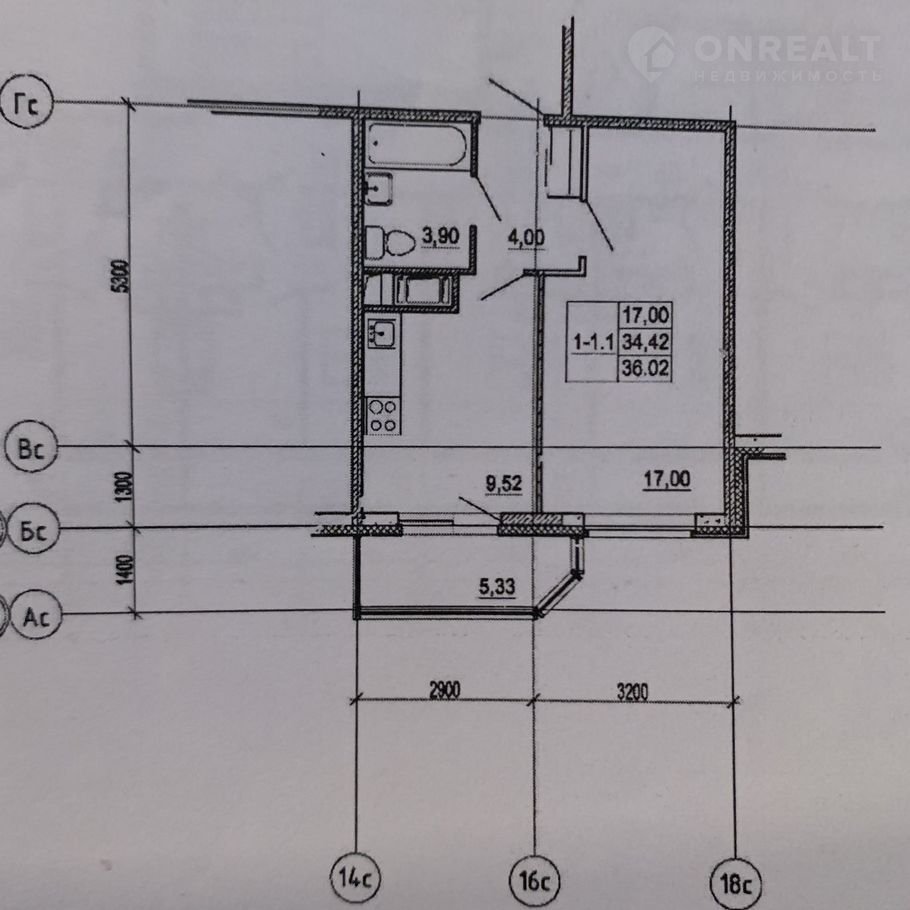 Общая площадь 36 м2