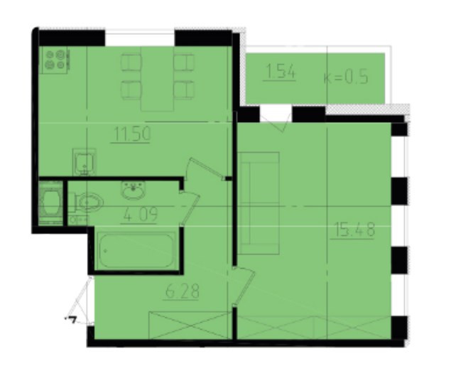 Общая площадь 39 м2