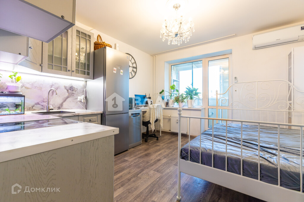 Светлая и уютная студия с хорошим ремонтом на комфортном 9 этаже. В квартире сделан качественный ремонт, делали для себя! Студия имеет удобную планировку с выделением прихожей зоны и жилого пространства - отгорожены дверью. В жилом пространстве имеется всё необходимое для жизни - в квартире остаётся вся мебель и техника. Так же в студии установлен кондиционер. Окна выходят во двор, вдали от шумных дорог. Балкон обустроен - кафель на полу, стеллажи, место для сушения белья.