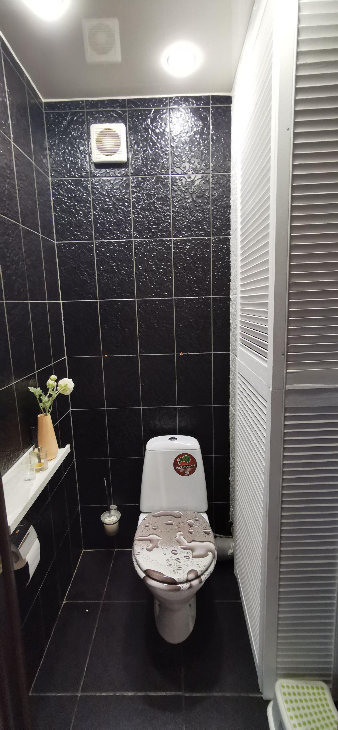 В туалете установлен бойлер (80л), натяжной потолок, фильтр на холодную воду, гигиенический душ.