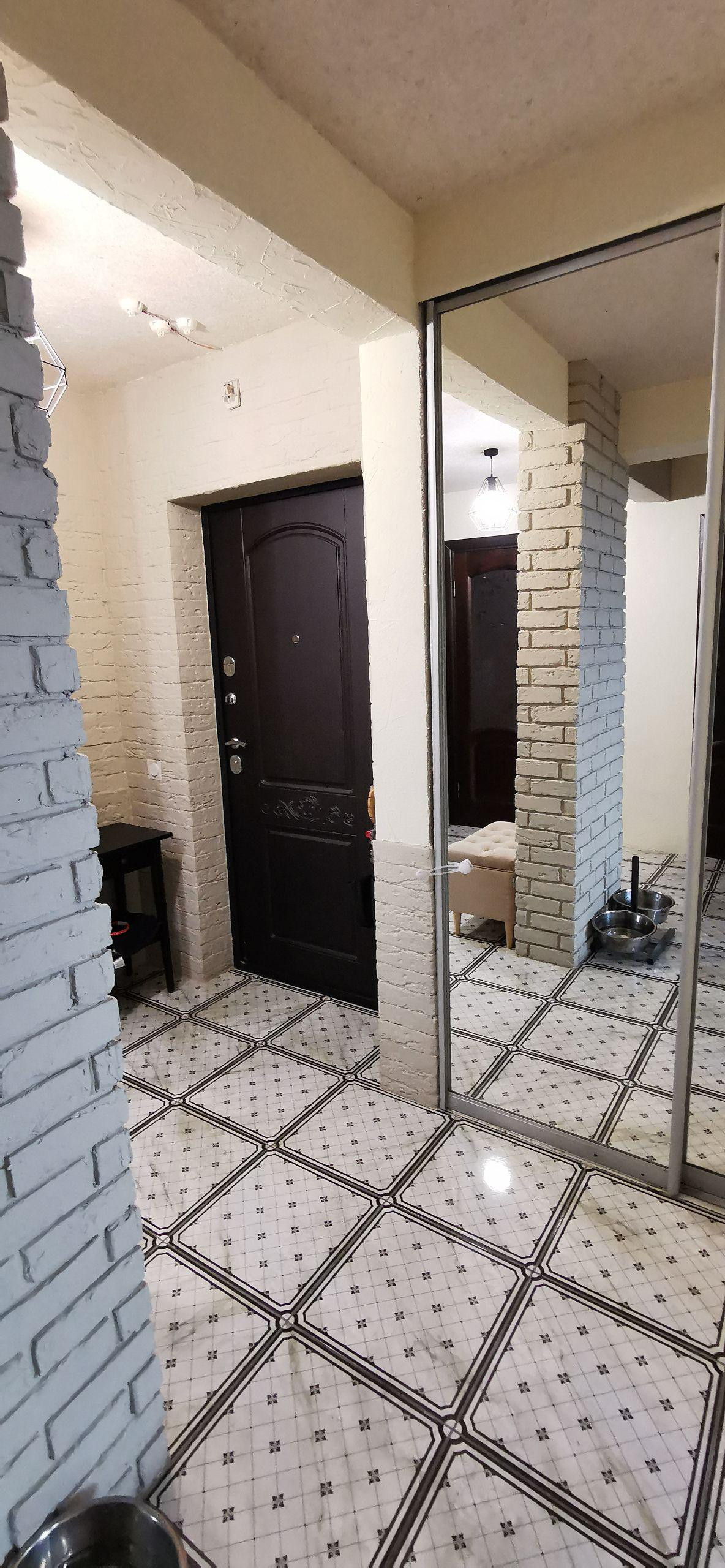 В прихожей для новых хозяев квартиры два шкафа-купе с зеркальными дверями "в пол". Один шкаф-купе для повседневной одежды, обуви и с дополнительным местом для хранения вещей. Второй шкаф-купе оснащён системой хранения типа "___" и позволяет хранить длинные пальто, шубы, плащи и т.д., а также быстро и без инструментов переставать конфигурацию наполнения шкафа.