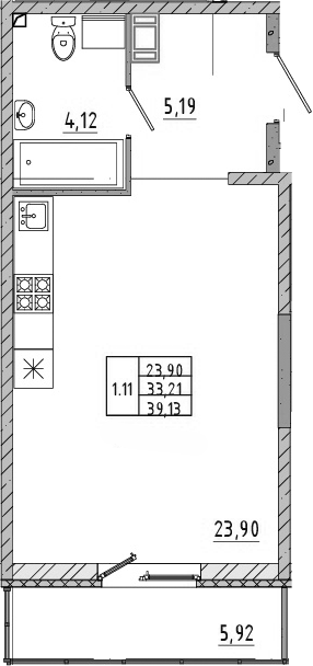 Общая площадь 33.21 м2