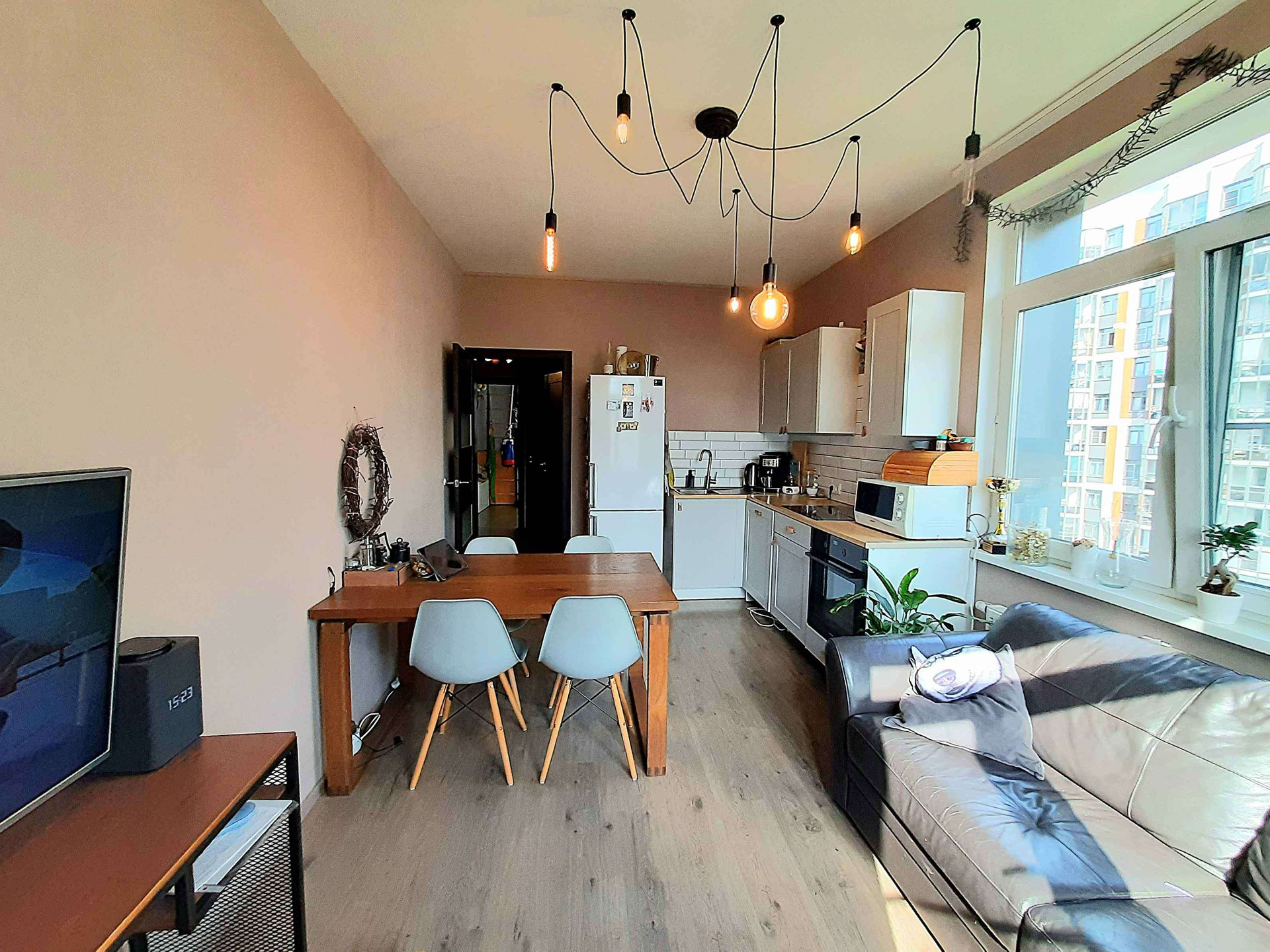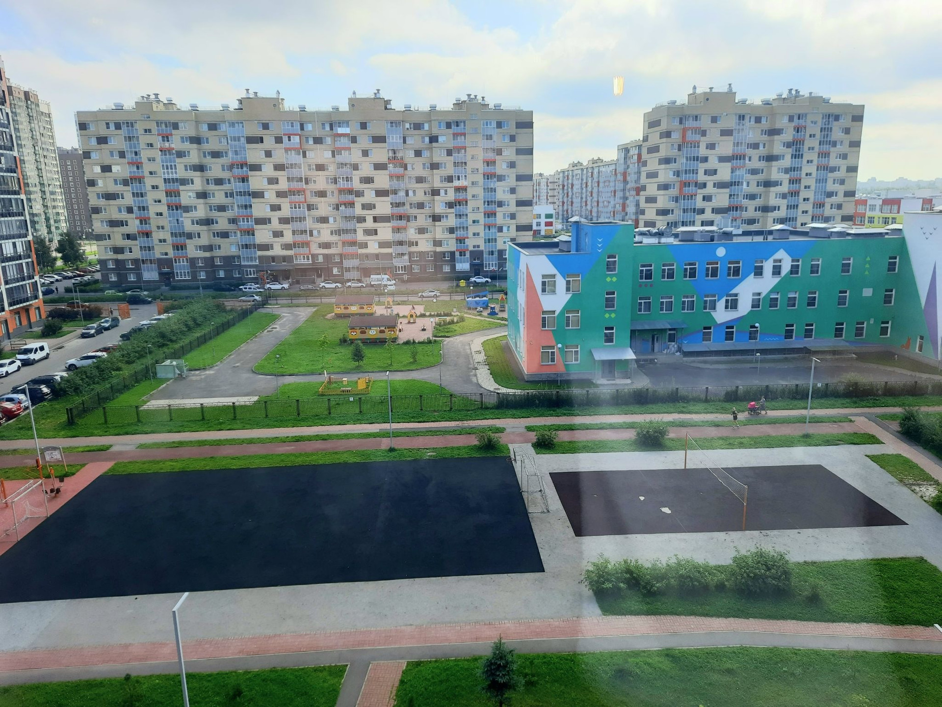 Новый район с развитой инфраструктурой. Удобное транспортное сообщение, выезд на КАД. Детские сады, школы, магазины, спортивные площадки. Закрытая территория. Всегда свободные места на парковке.