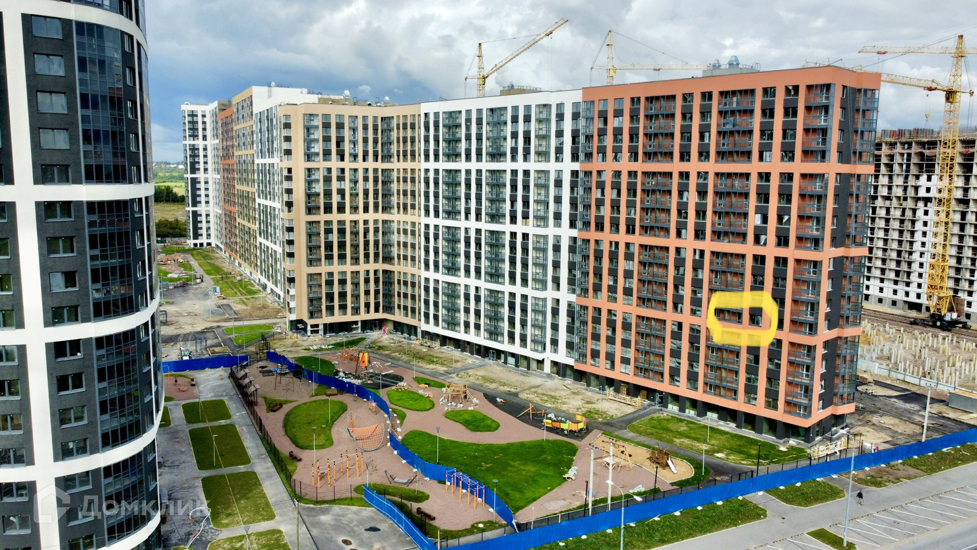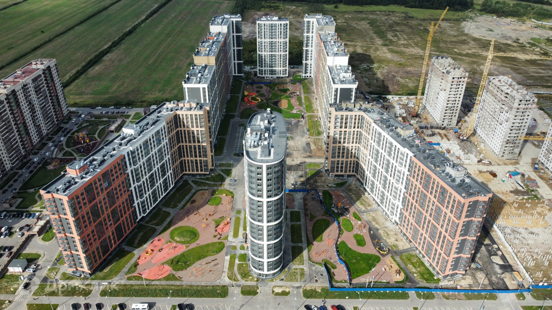 Придомовая территория благоустроена пешеходными тротуарами, зелеными зонами и местами для отдыха. Расположение корпусов образует закрытые дворы, где установлены детские и спортивные площадки и уличные тренажеры. На территории ЖК работает служба консьержей и охраны.