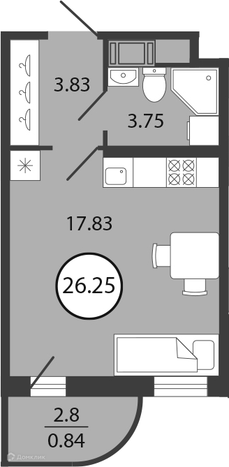 Общая площадь 26.25 м2