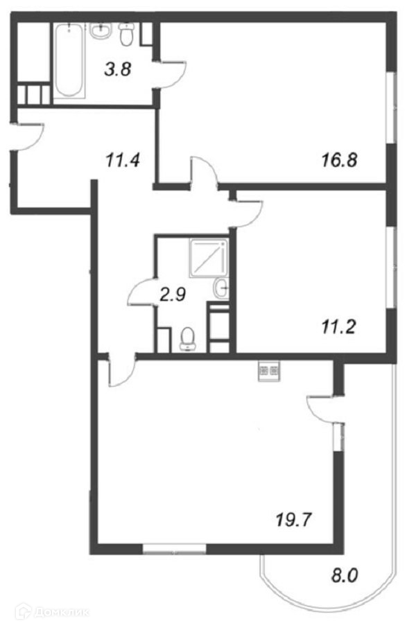 Общая площадь 69.8 м2