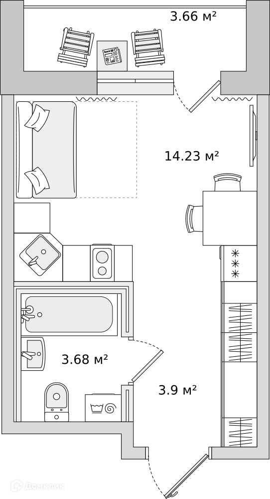 Балкон, лоджия 1 лоджия
