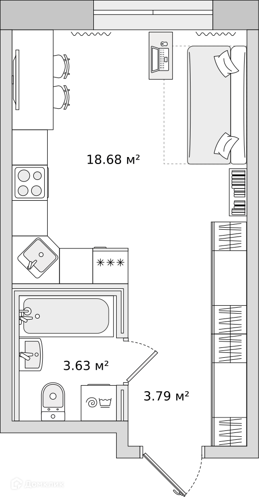 Общая площадь 26.6 м2