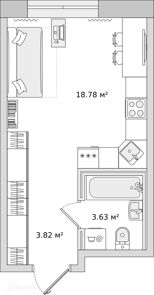 Общая площадь 26.3 м2