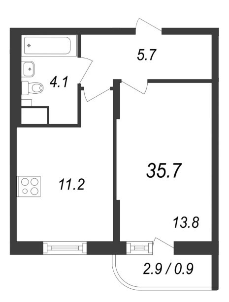 Общая площадь 36 м2