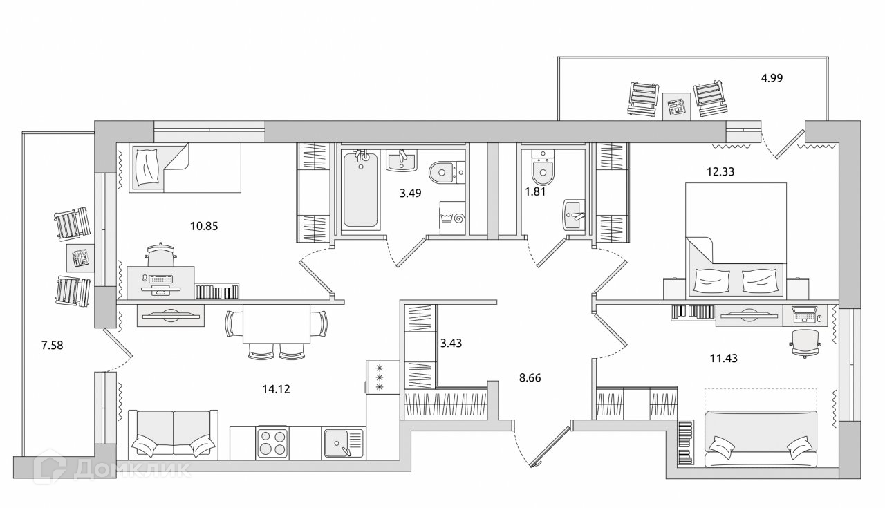 Общая площадь 66.12 м2