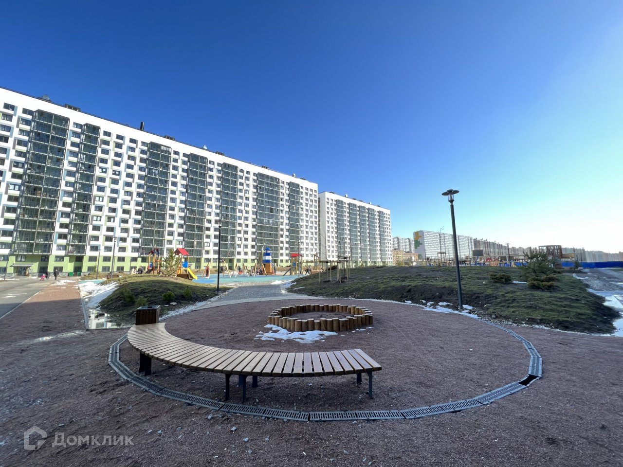 Большой двор с современным ландшафтным дизайном.  Гостевые парковки вынесены за пределы зон отдыха. На закрытом участке устроены игровые площадки для детей разного возраста, спортивные зоны и прогулочные дорожки. Территория находиться под видеонаблюдением. Оставить машину можно в пятиуровневом паркинге на 400 мест.