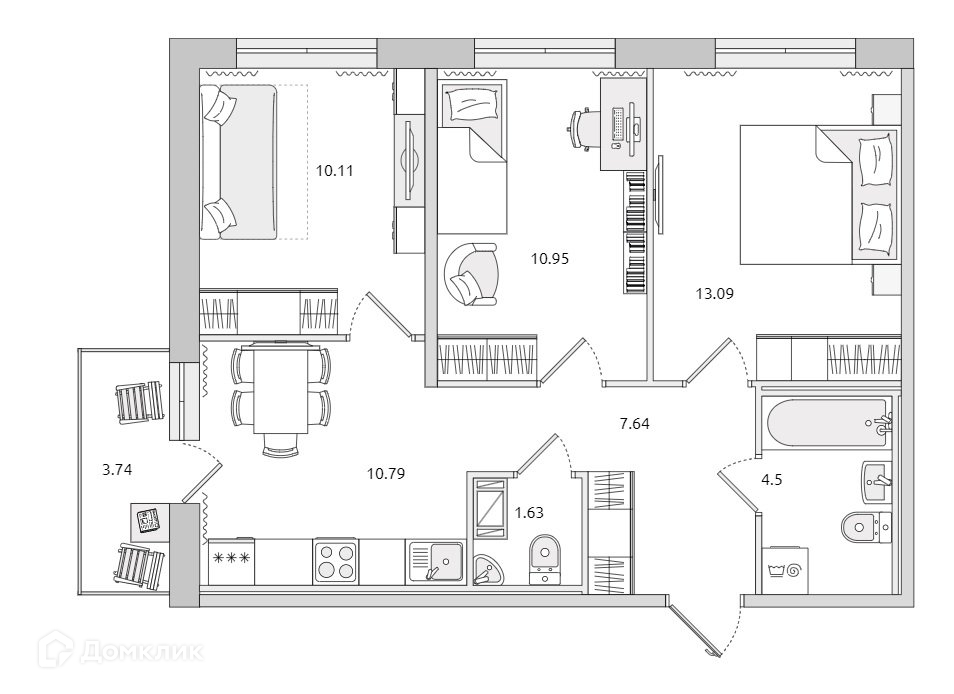 Жилая площадь 34.2 м2