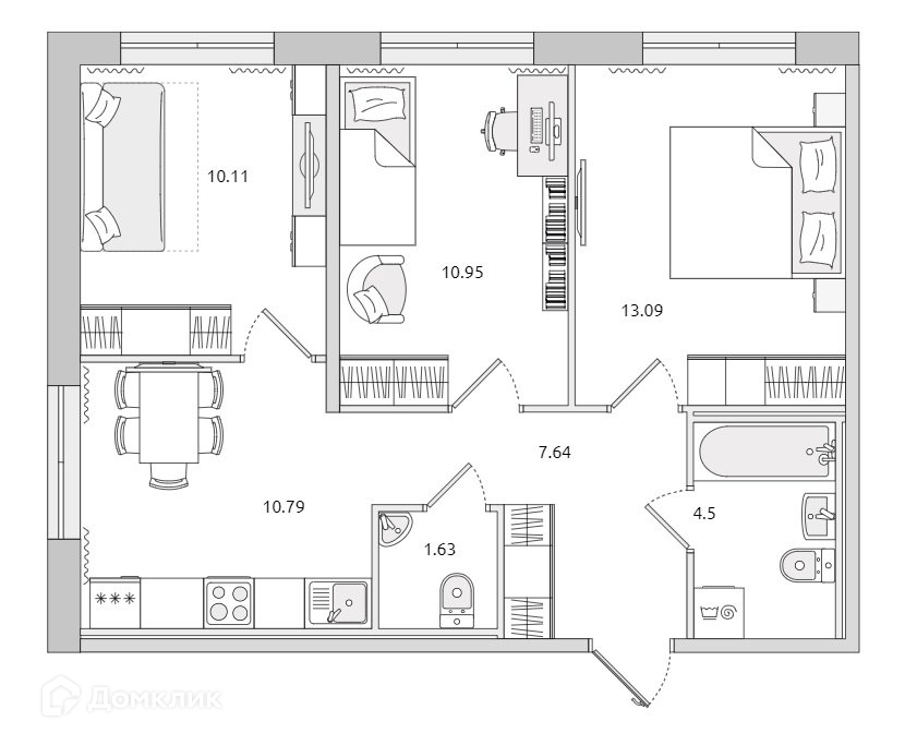 Общая площадь 58.7 м2