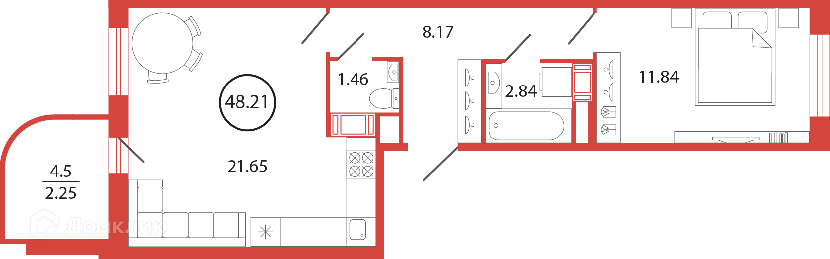 Общая площадь 48.21 м2
