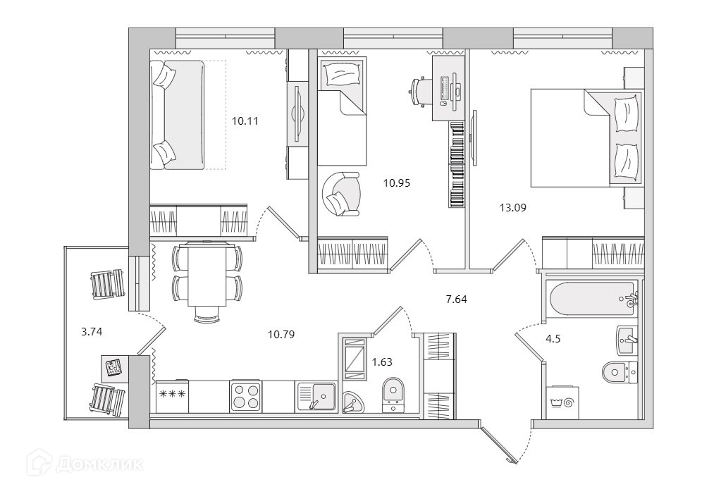 Площадь кухни 10.8 м2