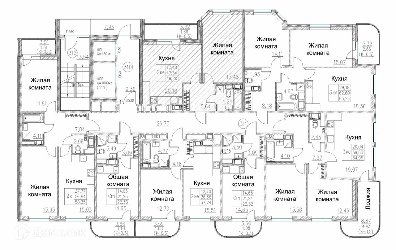 Общая площадь 49.2 м2