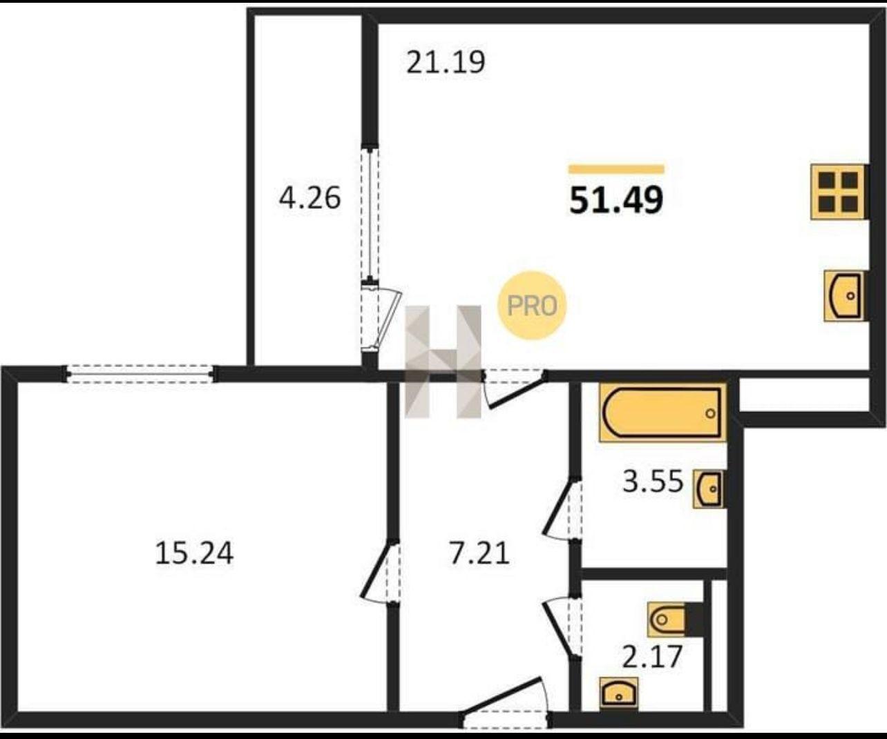 с/ узел раздельный : 3,55 кв. м- ванная комната и 2,17- туалет;