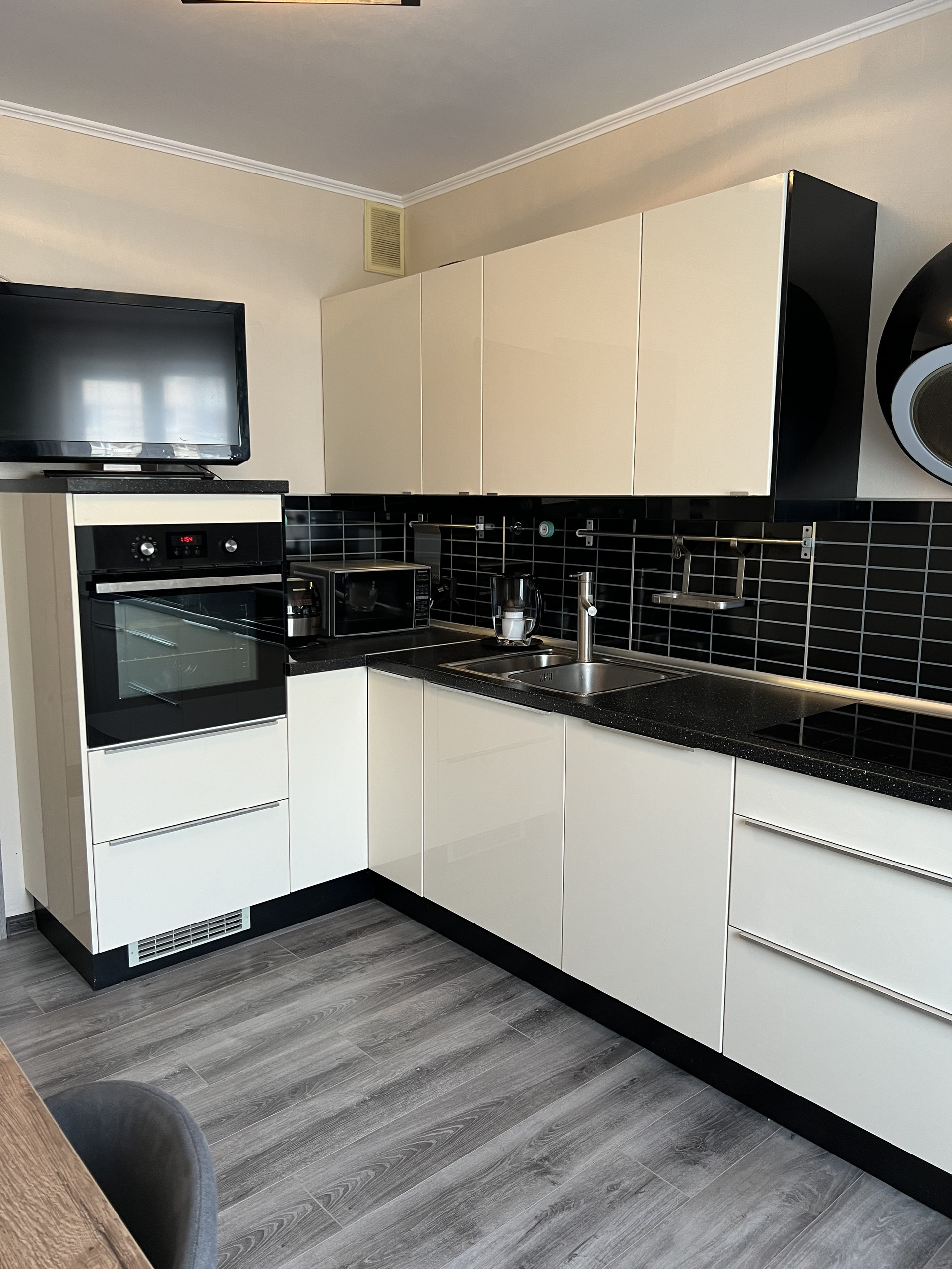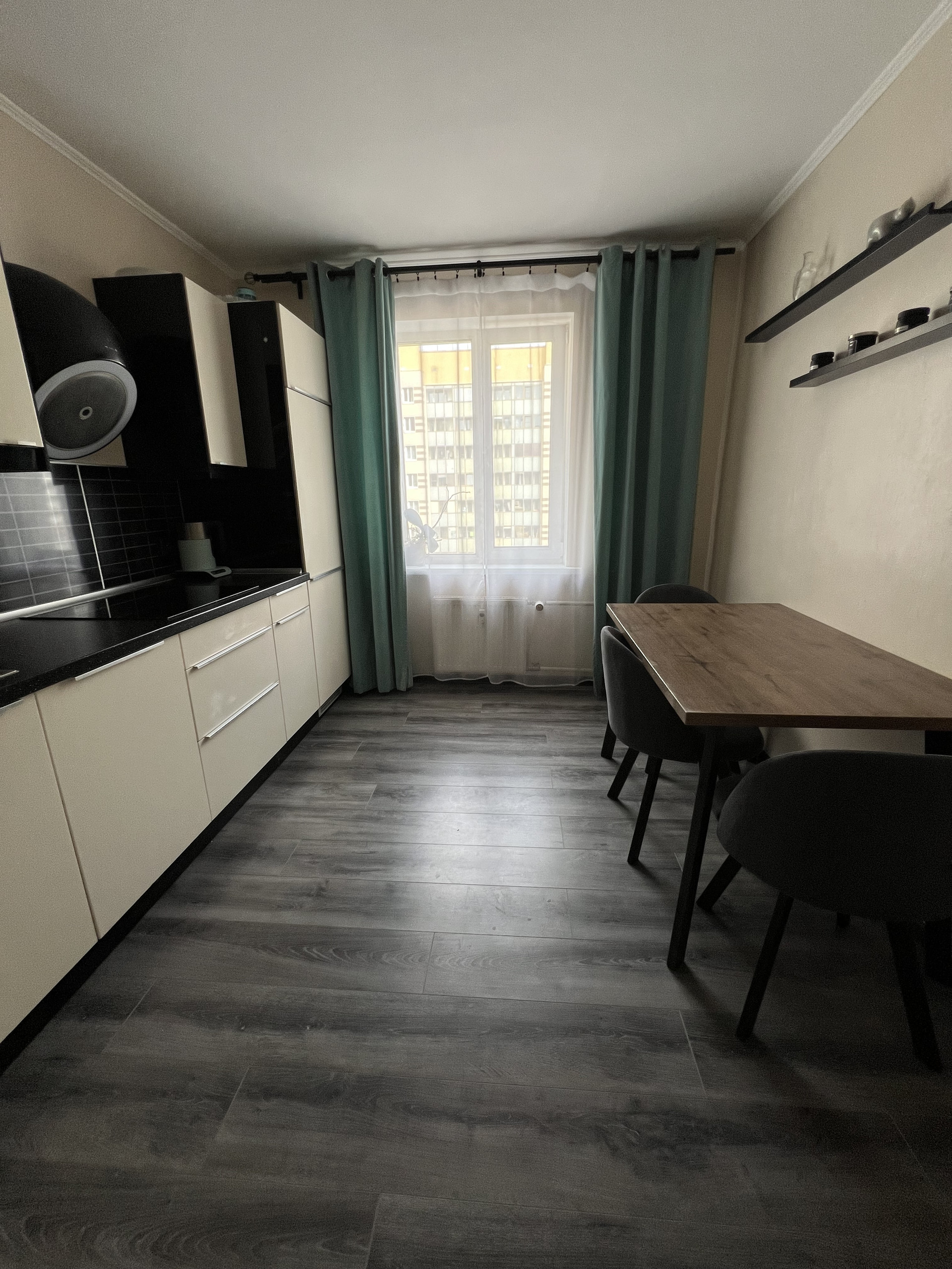 Встроенная кухня с техникой входит в стоимость квартиры.