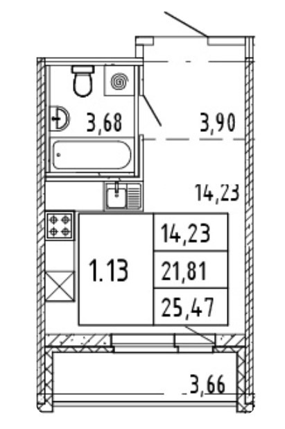 Общая площадь 24 м2