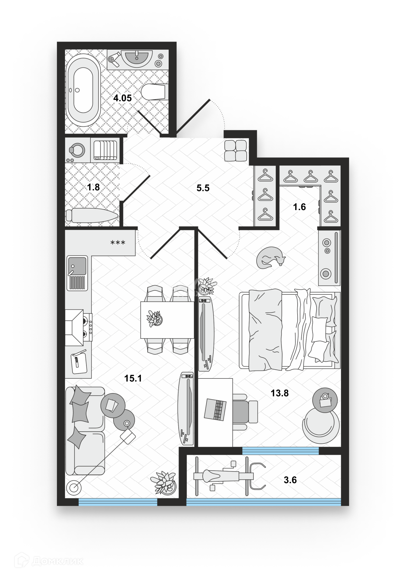 Площадь кухни 15.1 м2