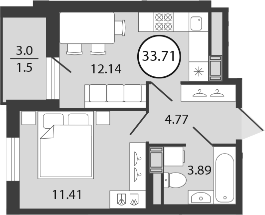 Общая площадь 34 м2