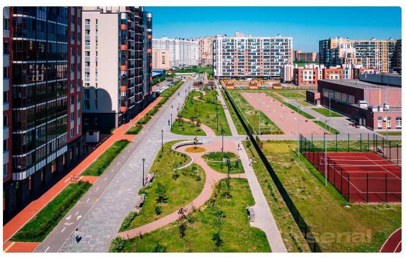 •    Прогулочный бульвар с фонтанами и скамейками