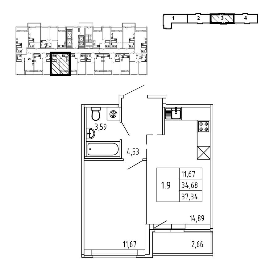 Общая площадь 37.34 м2