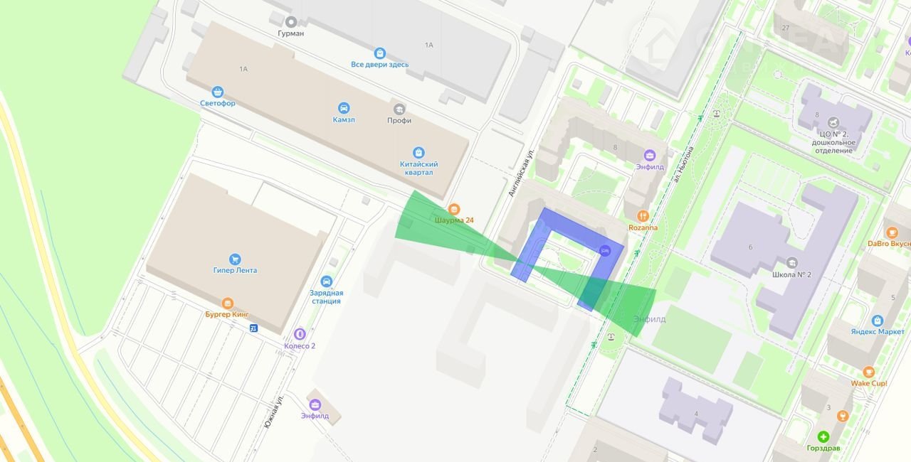 - В пешей доступности находится гипермаркет «Лента»