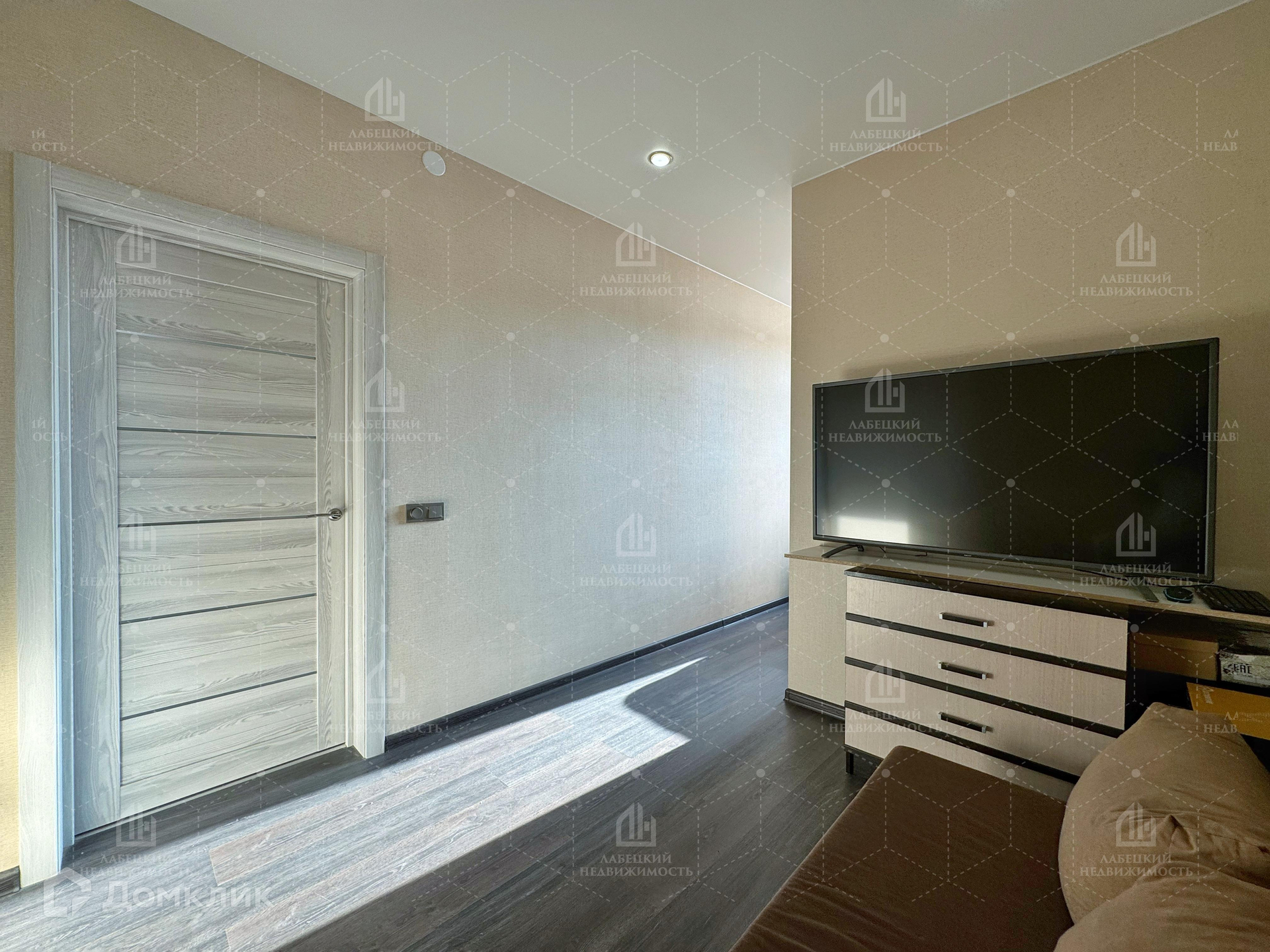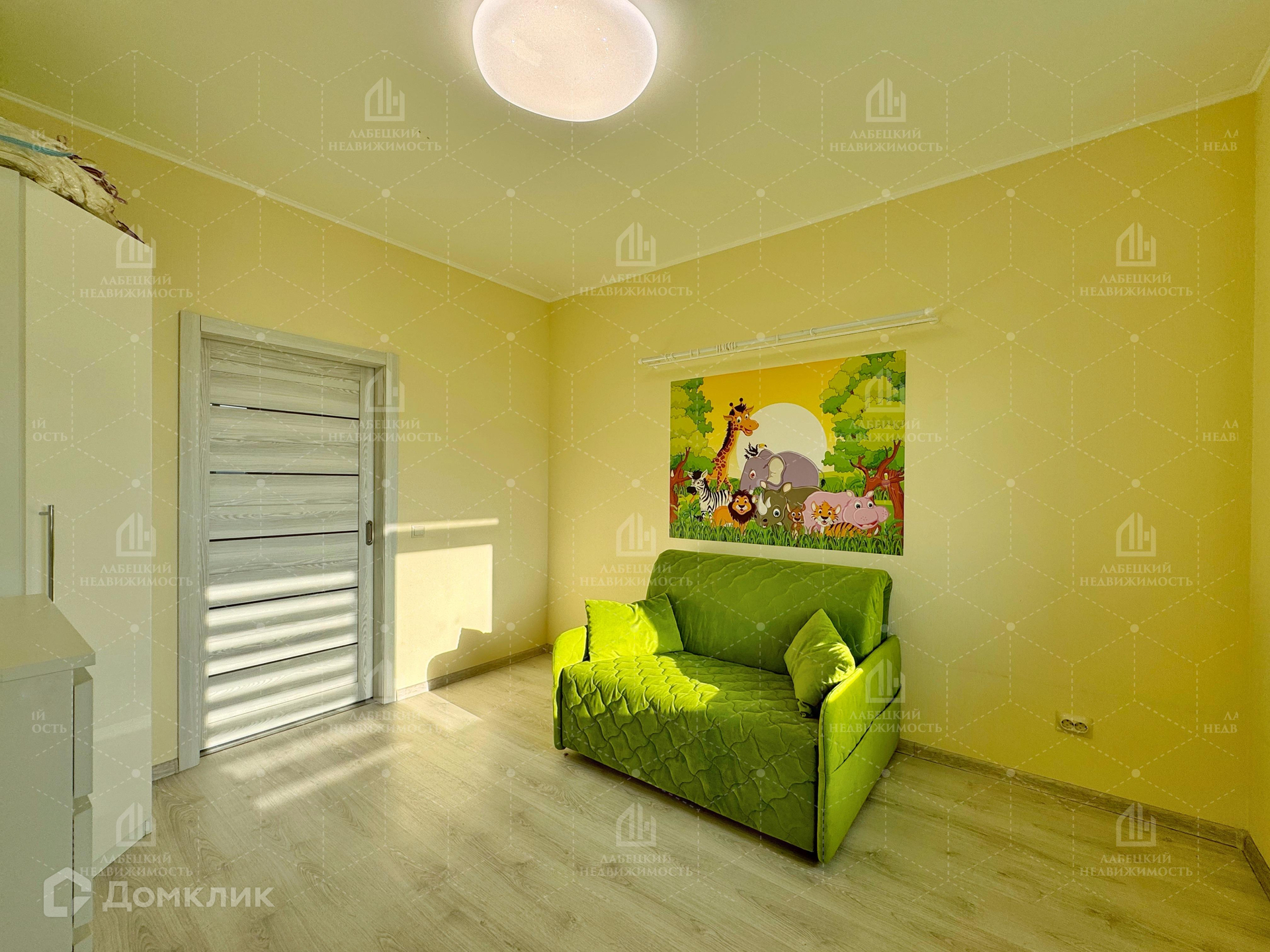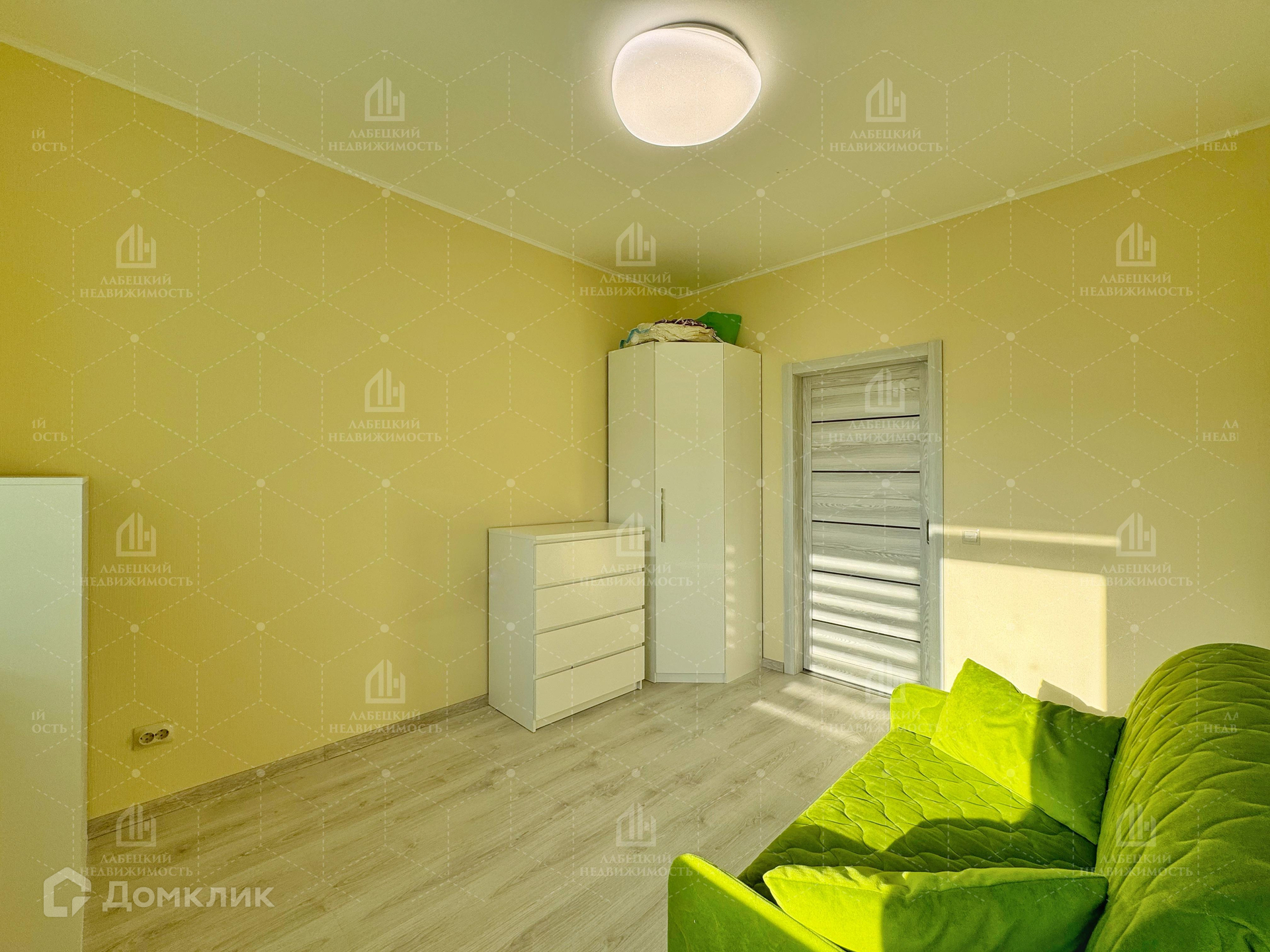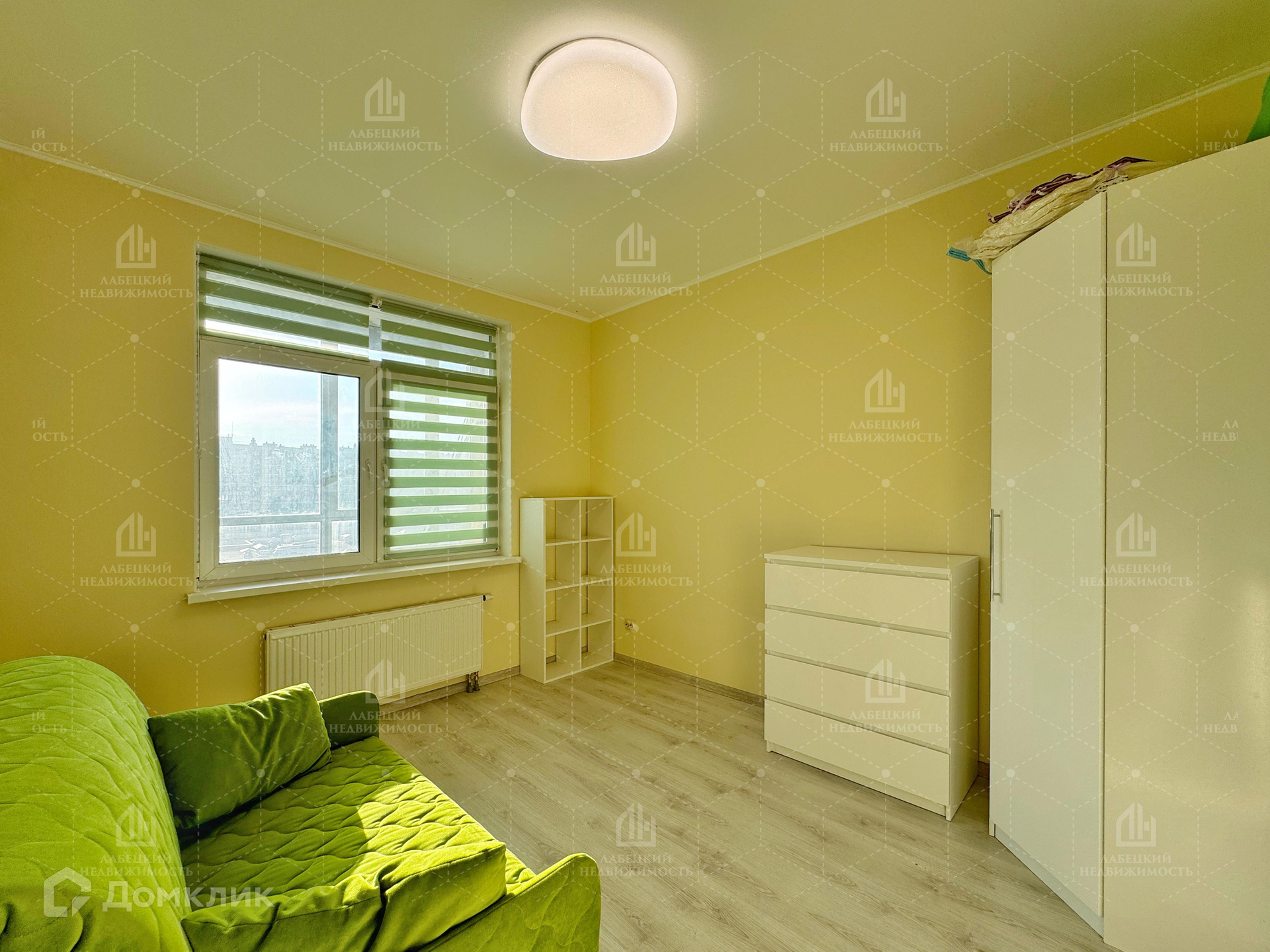 - БОЛЬШАЯ комната (15.7 м²) отлично подойдёт для родительской спальни. Здесь для удобства сделана перегородка, которая делит комнату на зоны, также она является удобной нишей, где установлен вместительный шкаф.
