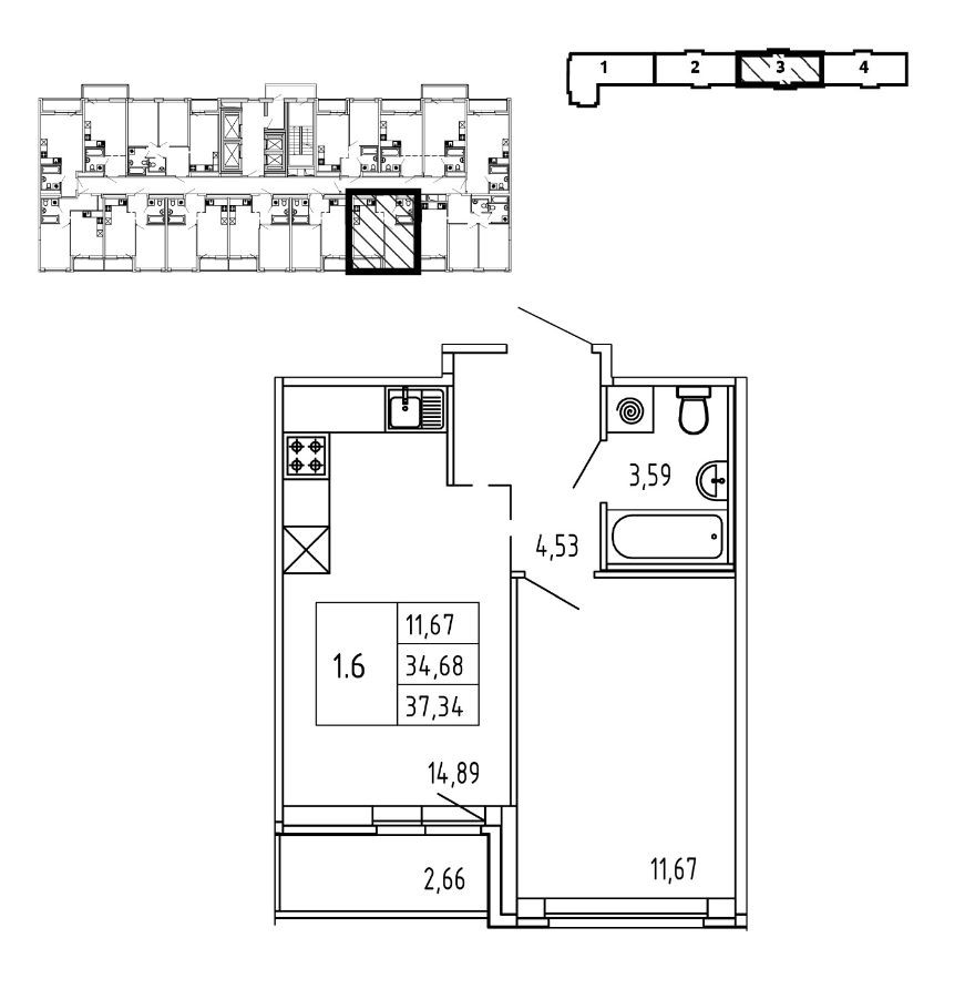 Общая площадь 37.34 м2