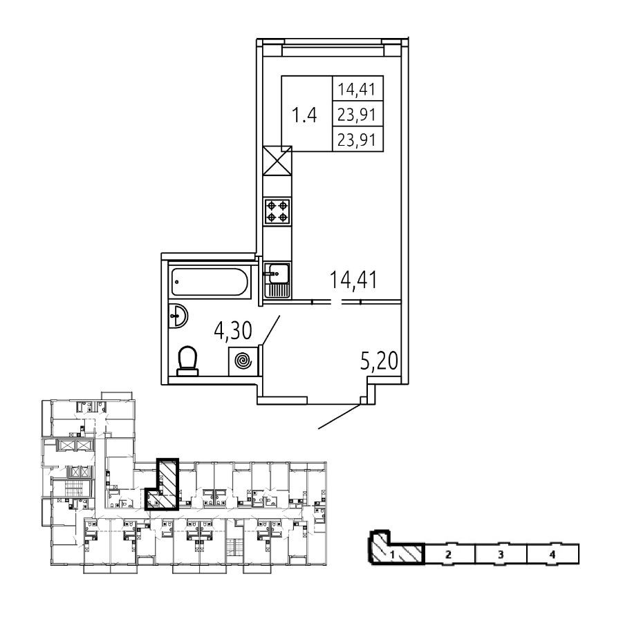 Общая площадь 23.91 м2