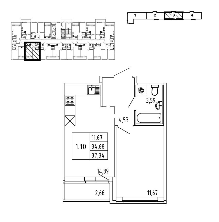 Общая площадь 37.34 м2