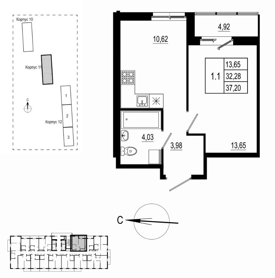 Площадь кухни 10.62 м2