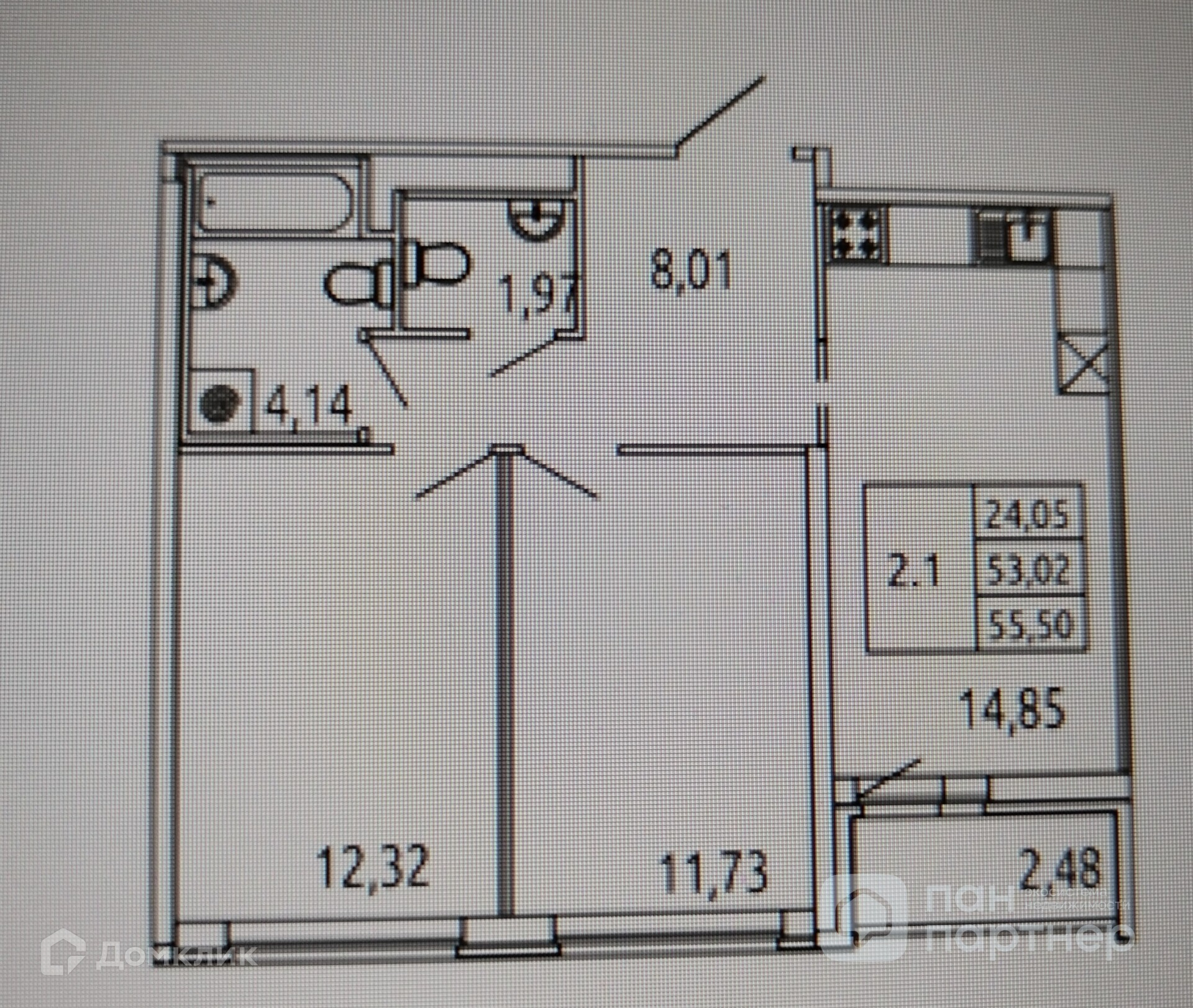 Общая площадь 55.5 м2
