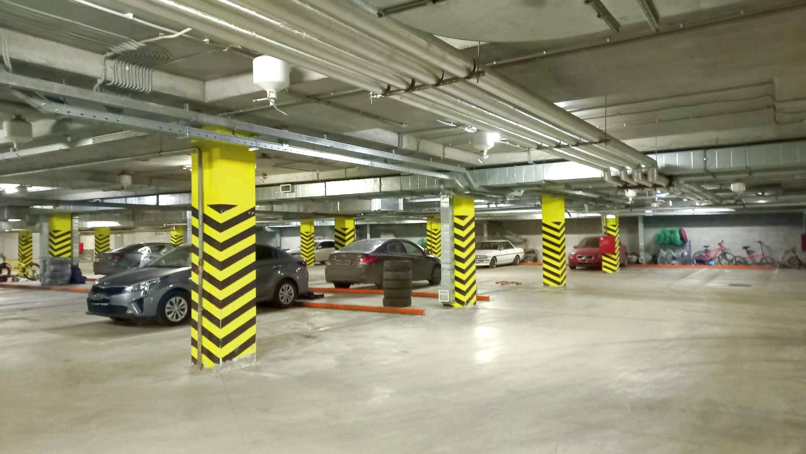 Паркинг тёплый. Камеры видеонаблюдения, вентиляция , пожарная система.