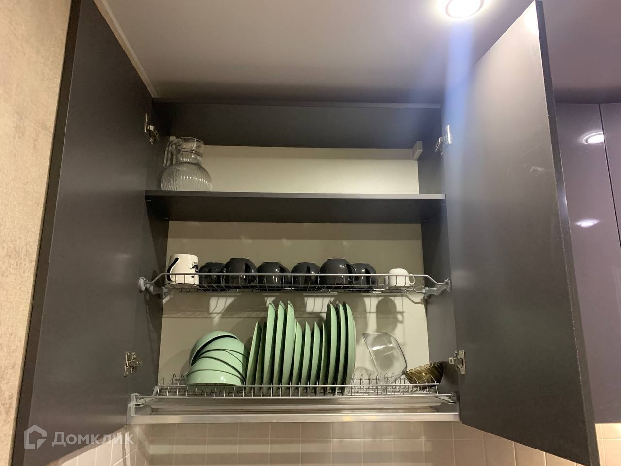 - Имеется кухонный гарнитур, плита, вместительный холодильник, микроволновка, посудомойка.