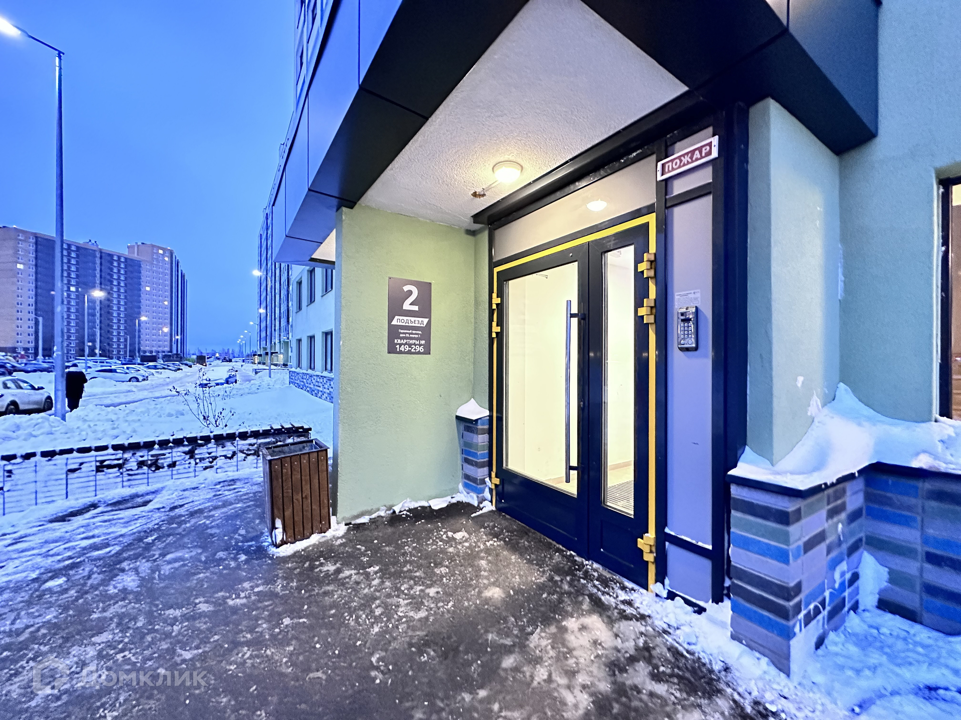 Дом - монолитный, окна выходят на улицу. Есть консьерж. В подъезде 2 лифта - 1 грузовой и 1 пассажирский. Во дворе есть парковка за шлагбаумом.