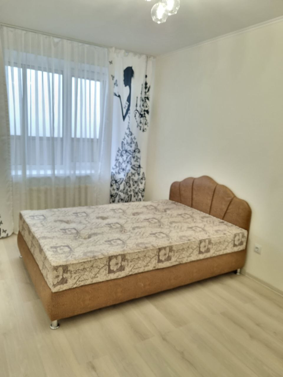 В комнате 2-х спальная кровать, 2-х створчатый шкаф-купэ,  люстра.