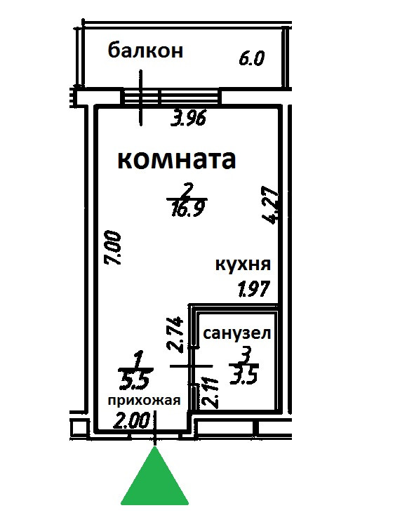 Общая площадь 26 м2