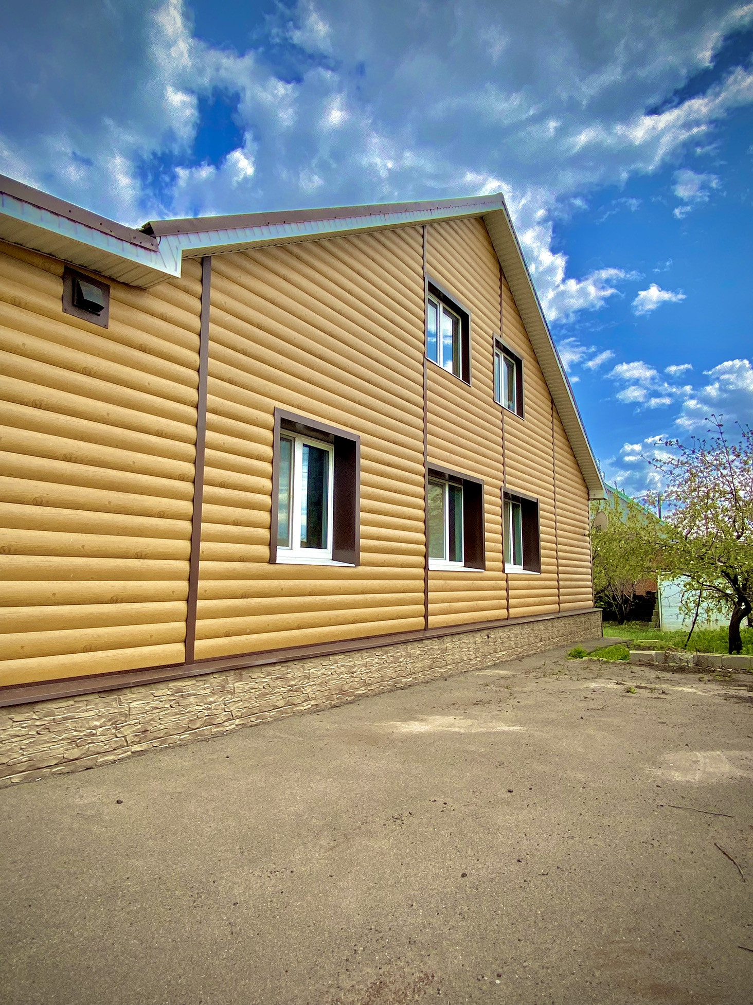 -Стены - кладка из СКБ блоков + кирпич + утеплитель + фасадная отделка(металлический сайдинг).