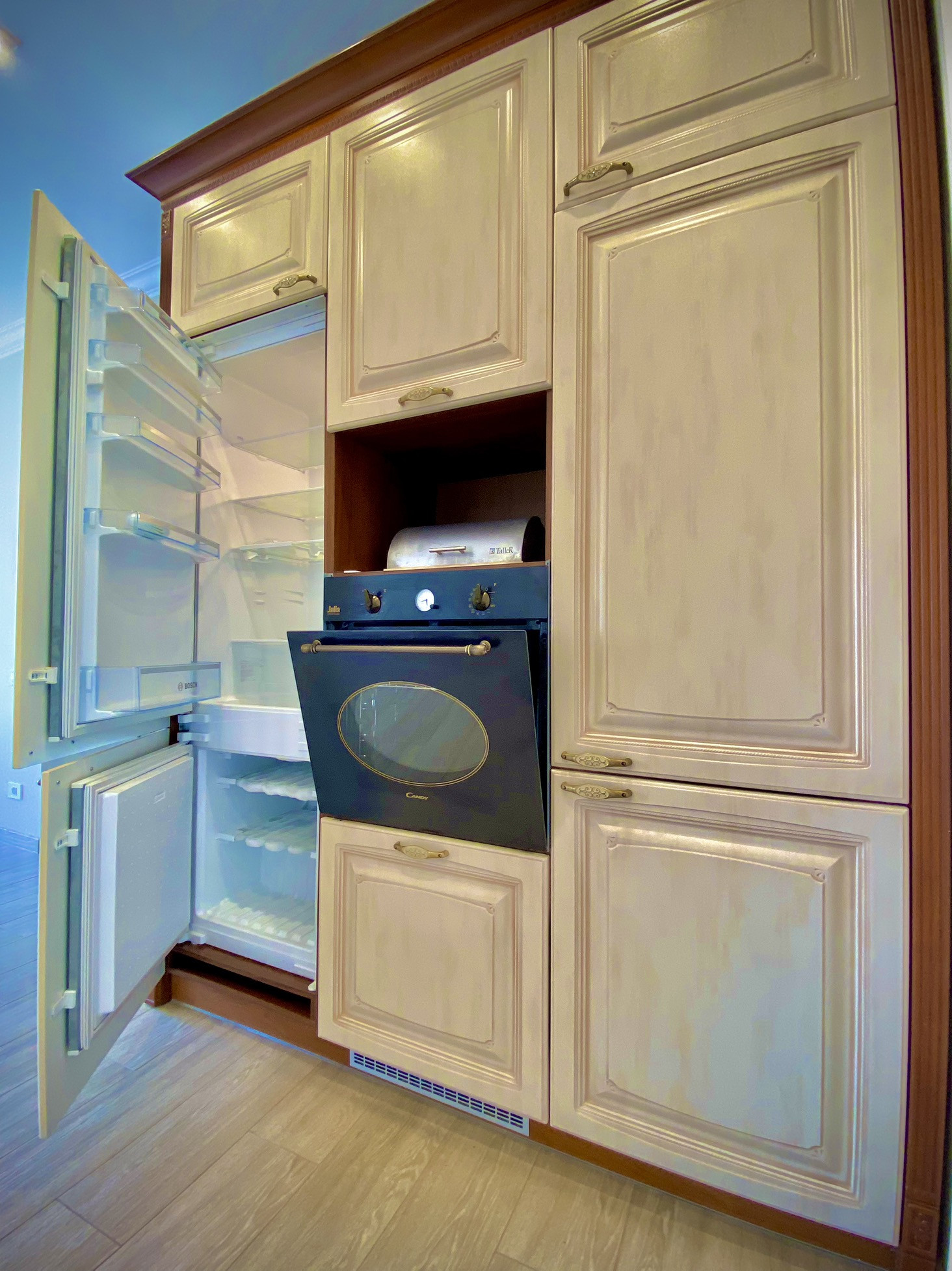 Остается: кухонный гарнитур со встроенной техникой(холодильник, варочная поверхность, посудомоечная машина, духовой шкаф, вытяжка); стеллаж в гардеробной, прихожая, шкафы.