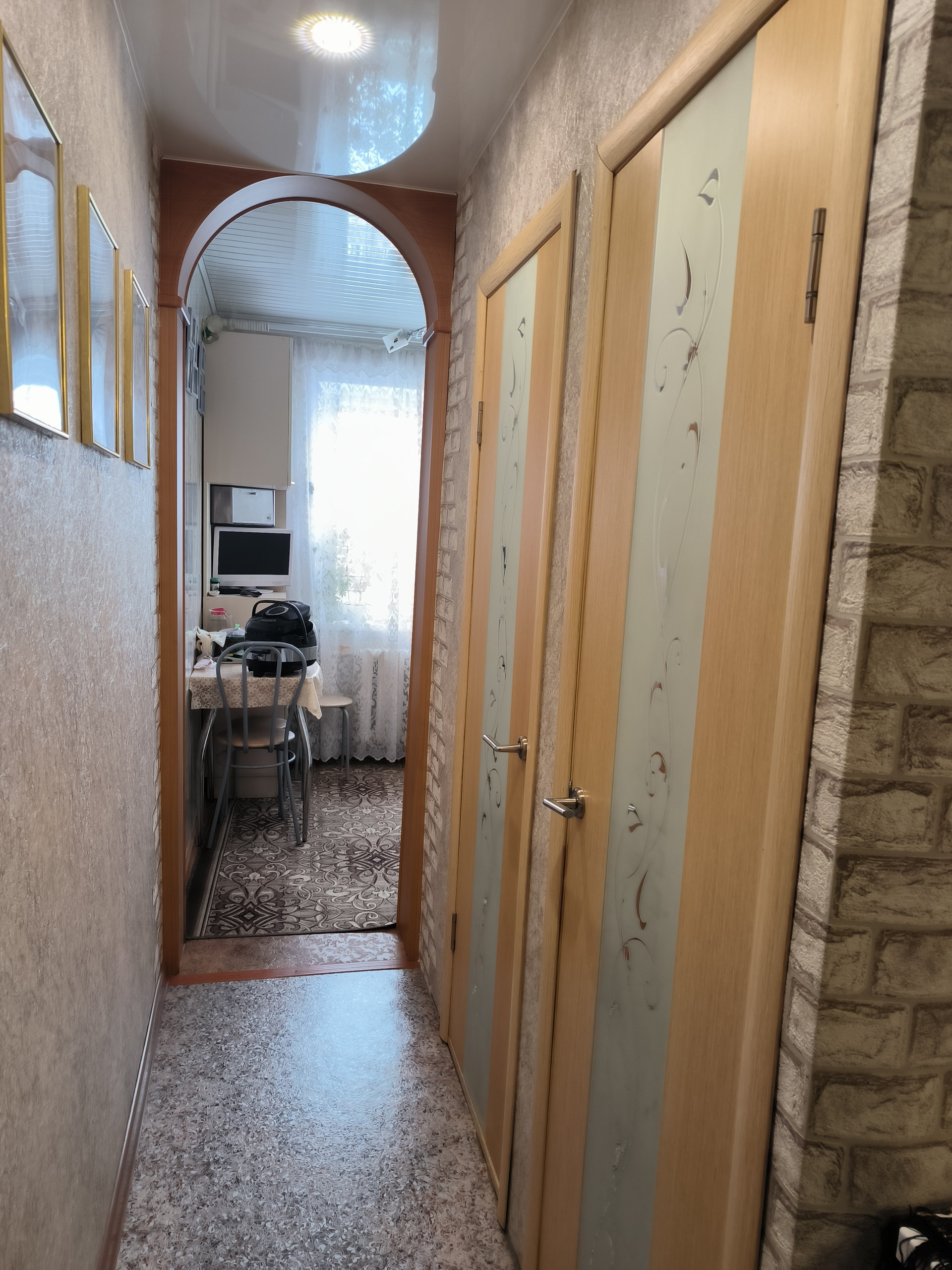 Кухня 5,5 м², комнаты 17   м² и   14 м².  Комнаты изолированные , просторная прихожая.   Пластиковые окна, балкон застеклен. Газовая колонка.Хорошее состояние. Во дворе детская площадка.