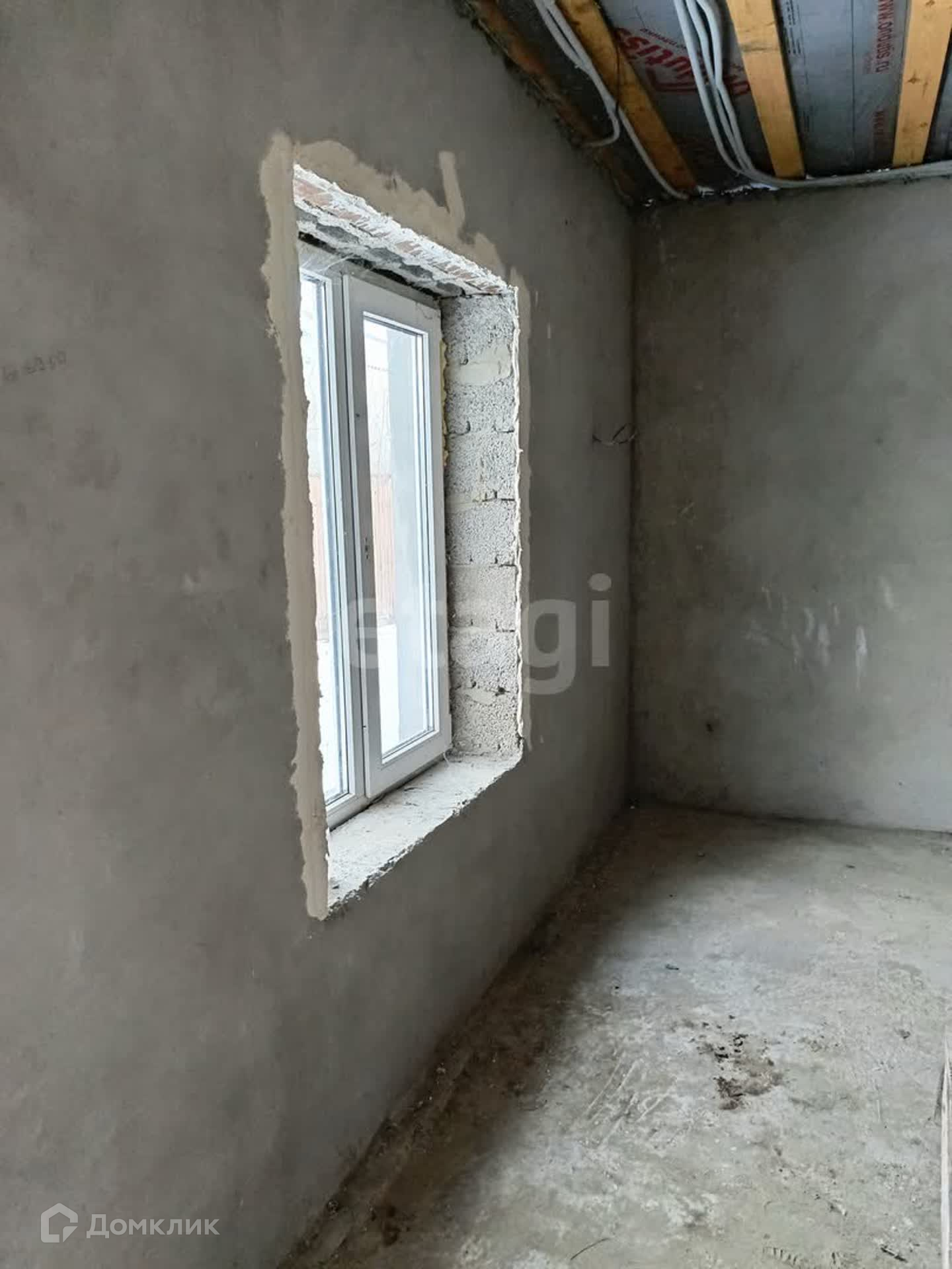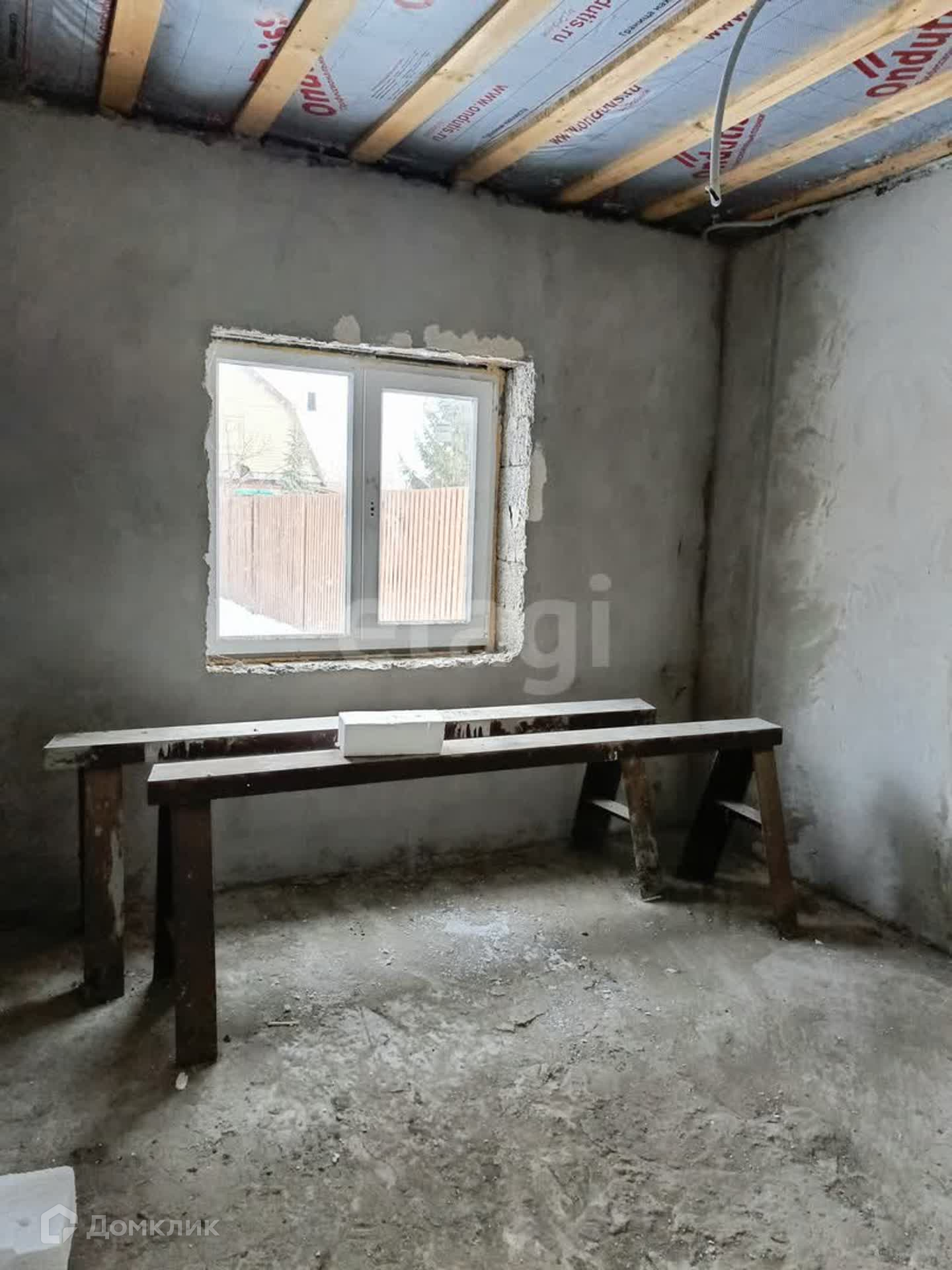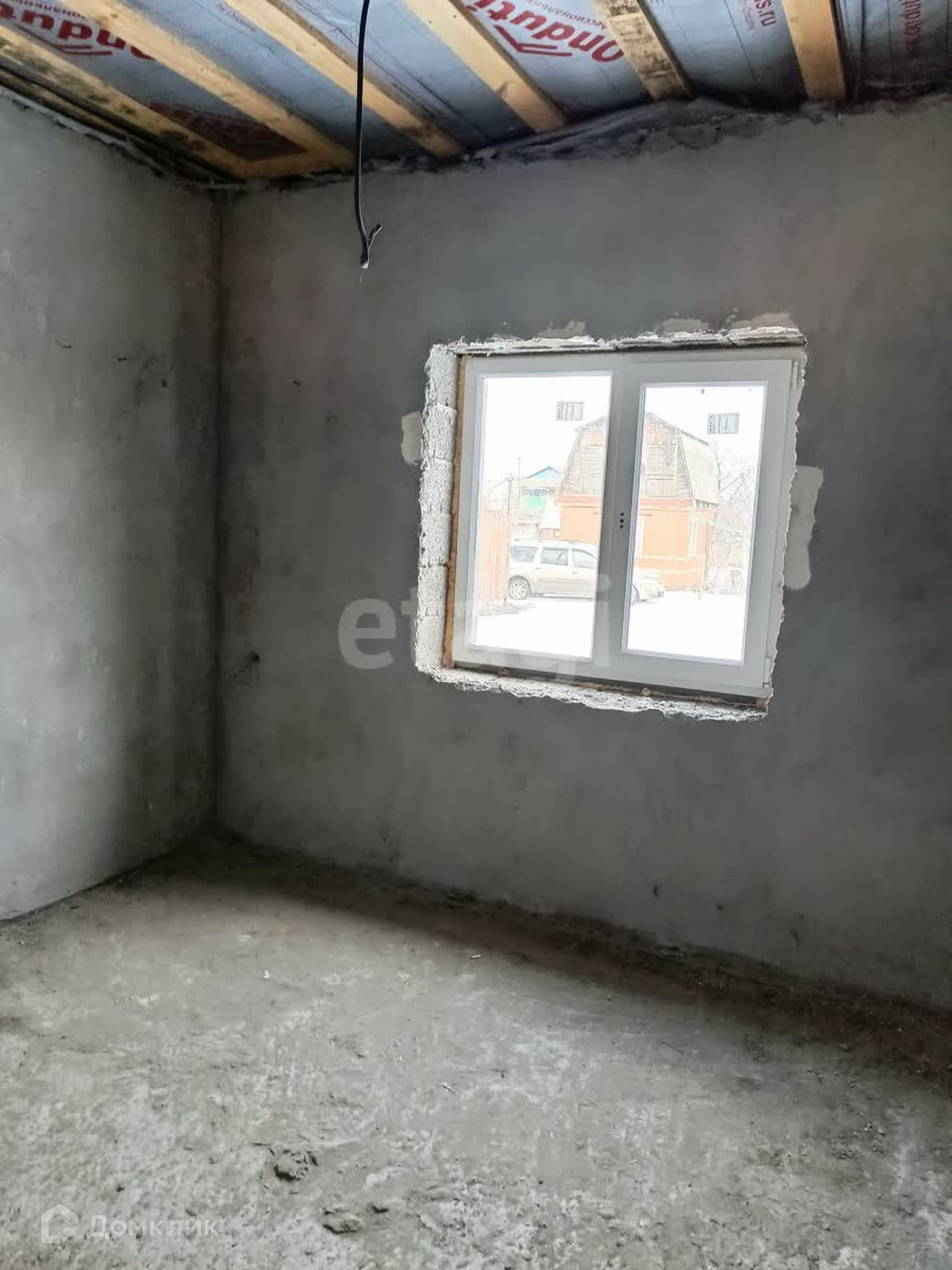 Дом 53 кв.м на участке 4 сотки из усиленных керамзитобетонных блоков размером 300*400*200. Фасад дома утеплен пенопластом, оштукатурен с применением фасадной сетки, подготовлен под дальнейшее чистовое покрытие. Стены внутри тоже оштукатурены и подготовлены к чистовой отделке. Крыша - металлочерепица.